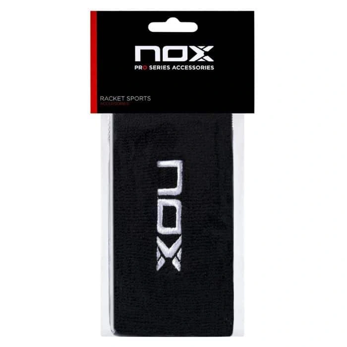 New colors and sizes for Nox’s padel and tennis wristbands. In black with a contrasting white logo.