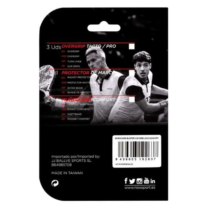 Keep your wrists protected in every shot with the Nox paddle sports wristbands in black with white logo.