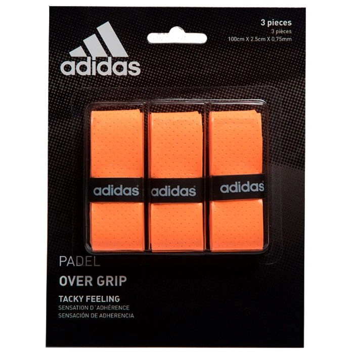 Orange overgrips from Adidas. Blister with 3 units. Dimensions : 100 cm x 2.5 cm x 0.75 mm.